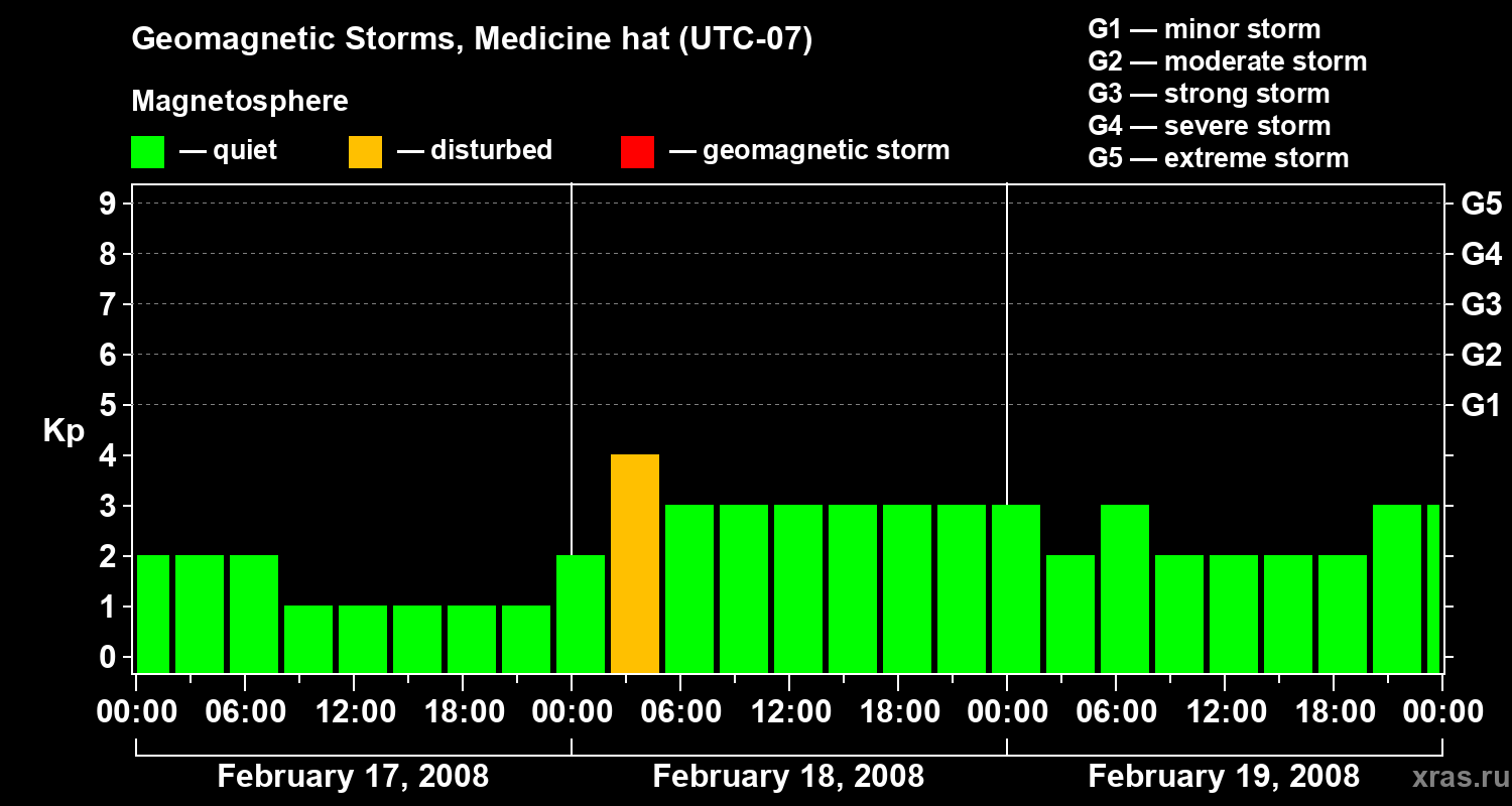 Geomagnetic storms in Medicine hat in February 2008