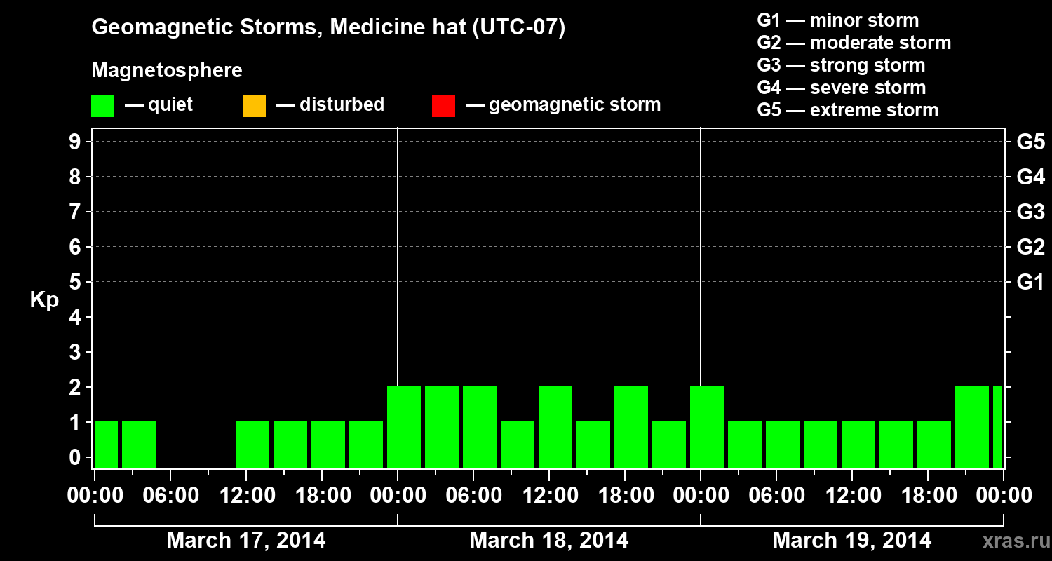 Geomagnetic storms in Medicine hat in March 2014