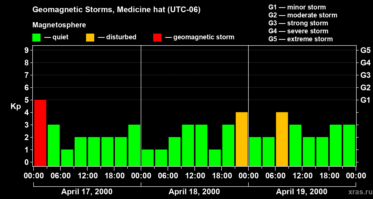 Geomagnetic storms in Medicine hat in April 2000