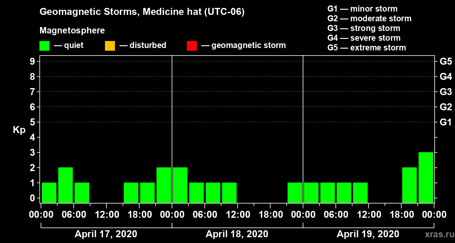 Geomagnetic storms in Medicine hat — Apr 19, 2020