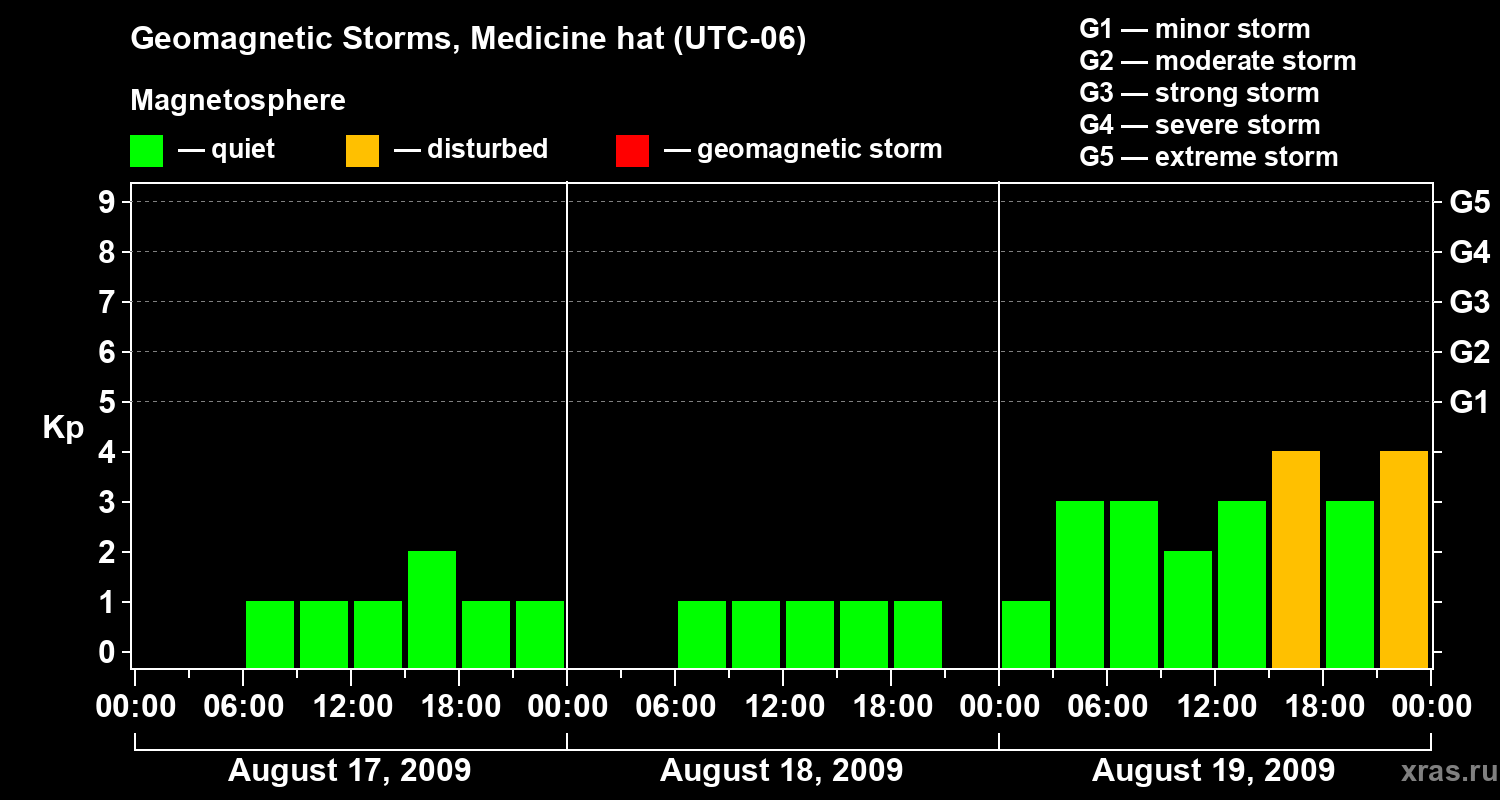 Geomagnetic storms in Medicine hat on Aug 19, 2009