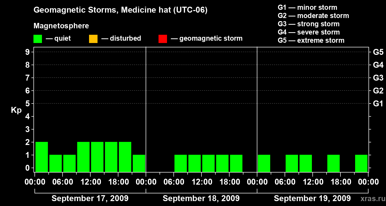 Geomagnetic storms in Medicine hat on Sep 19, 2009