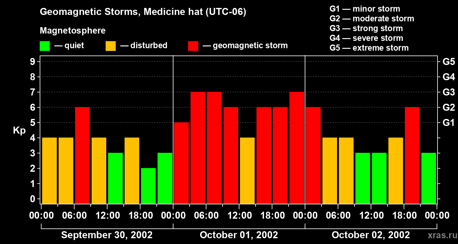 Geomagnetic storms in Medicine hat — Oct 02, 2002