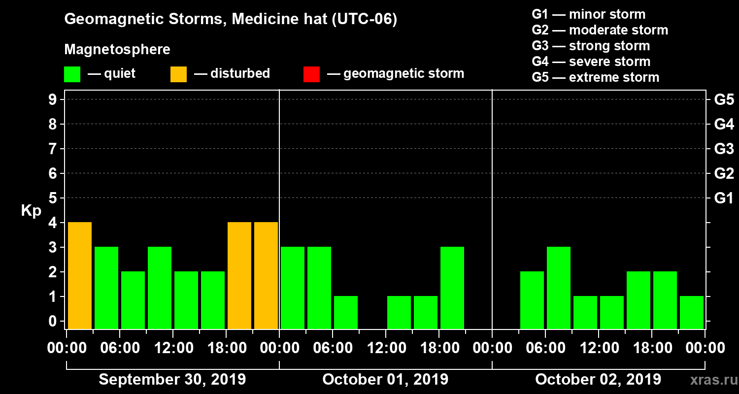 Geomagnetic storms in Medicine hat — Oct 02, 2019