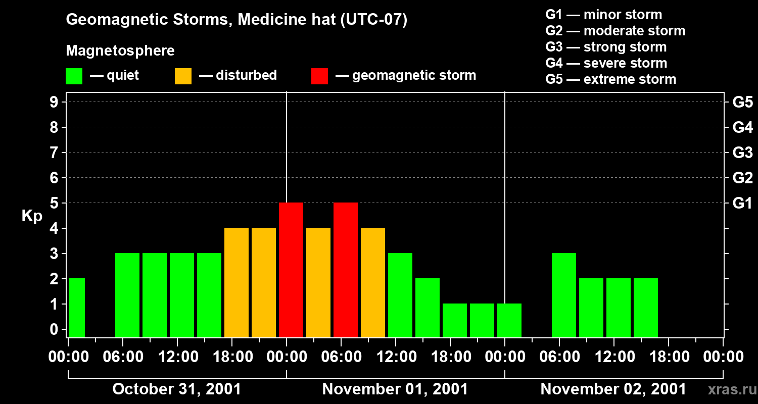 Geomagnetic storms in Medicine hat on Nov 02, 2001
