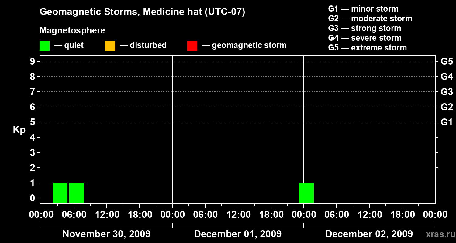 Geomagnetic storms in Medicine hat on Dec 02, 2009