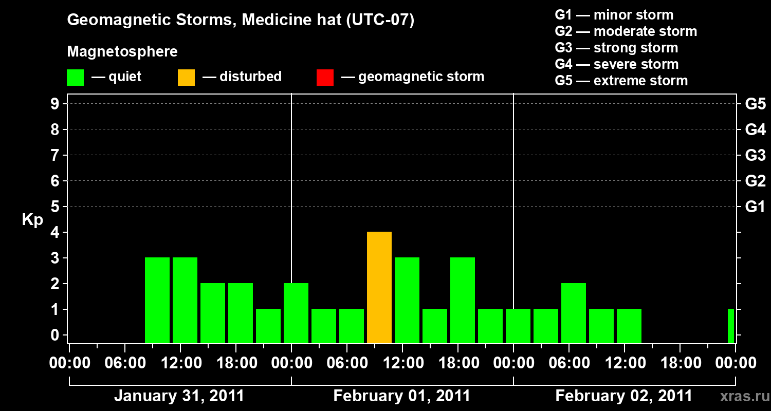 Geomagnetic storms in Medicine hat — Feb 02, 2011