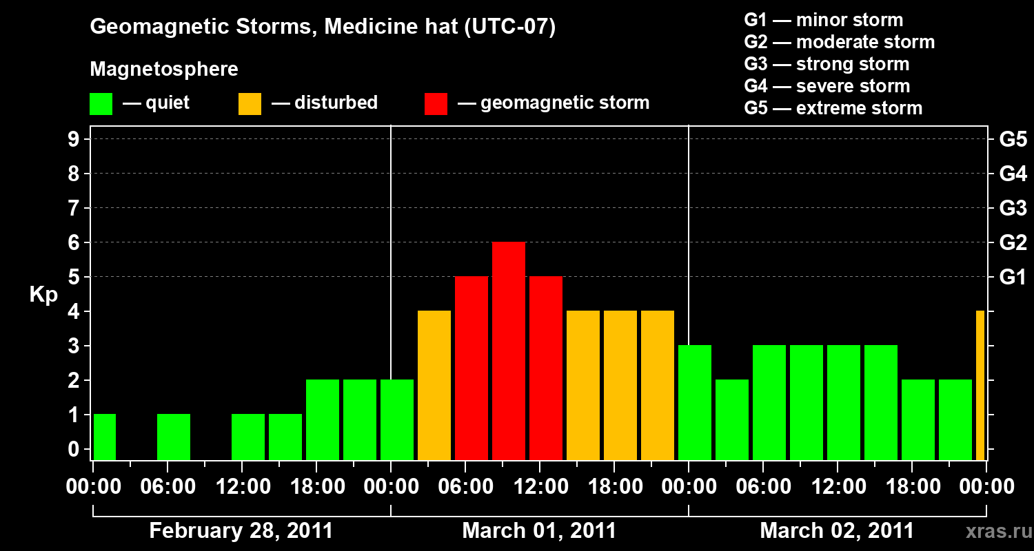 Geomagnetic storms in Medicine hat — Mar 02, 2011
