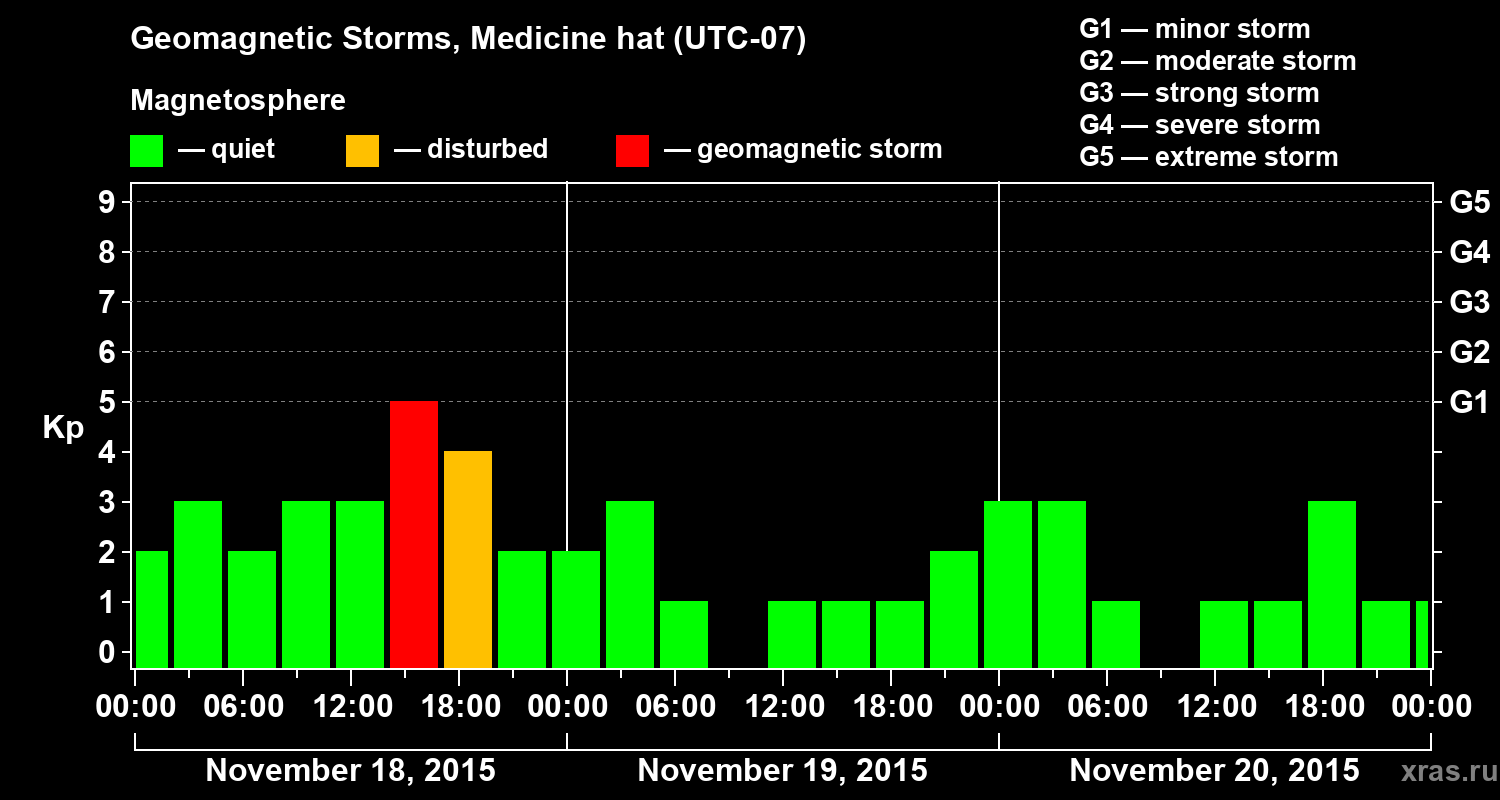 Geomagnetic storms in Medicine hat — Nov 20, 2015