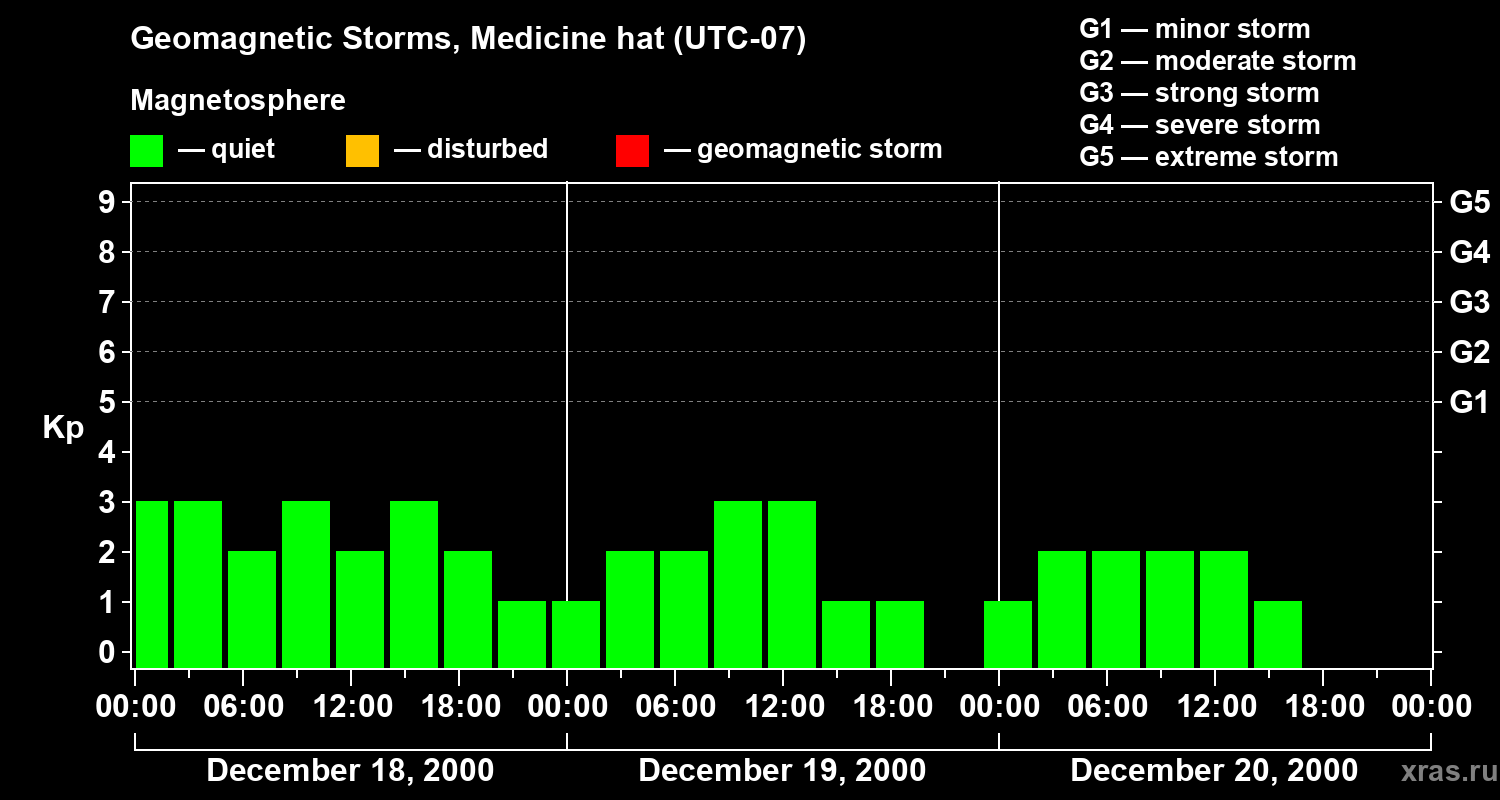 Geomagnetic storms in Medicine hat on Dec 20, 2000