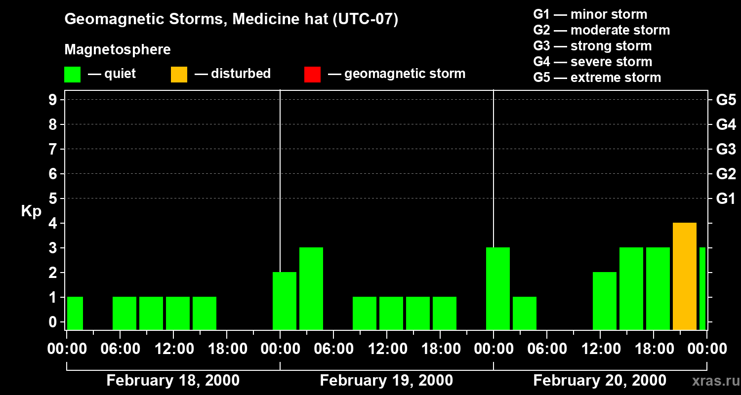 Geomagnetic storms in Medicine hat on Feb 20, 2000