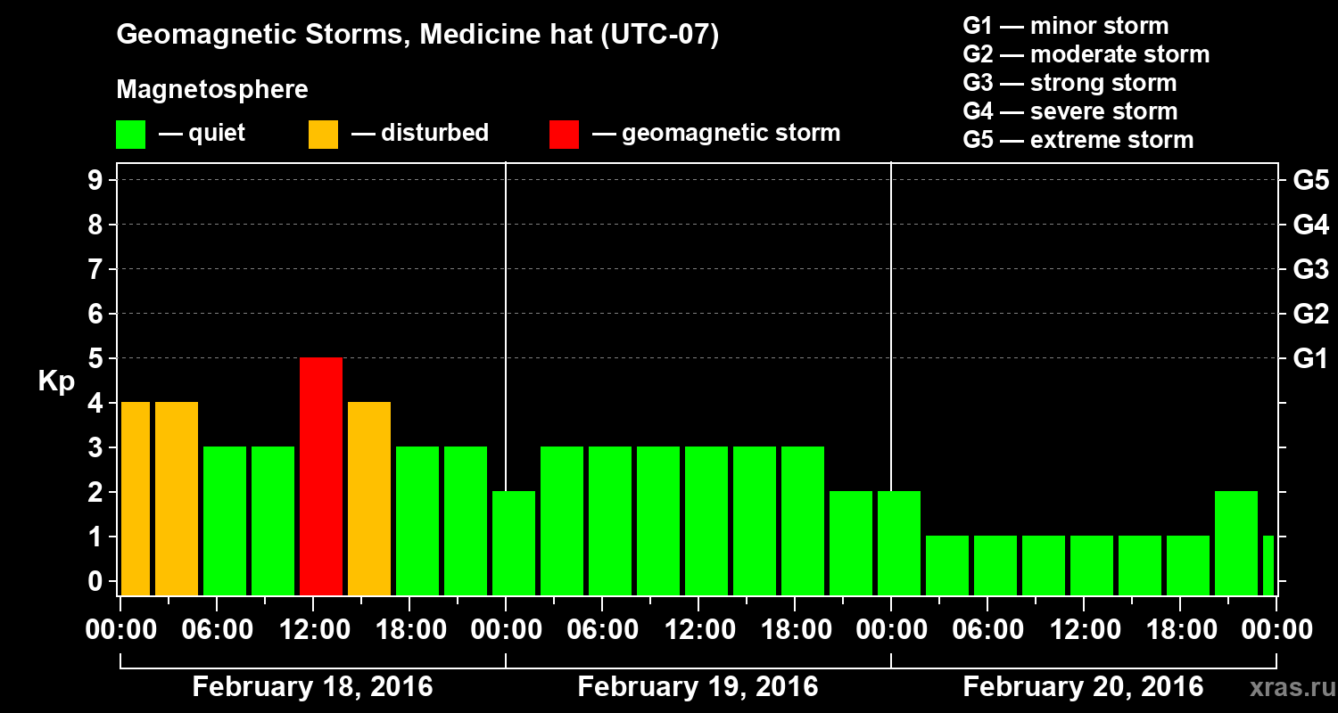 Geomagnetic storms in Medicine hat — Feb 20, 2016