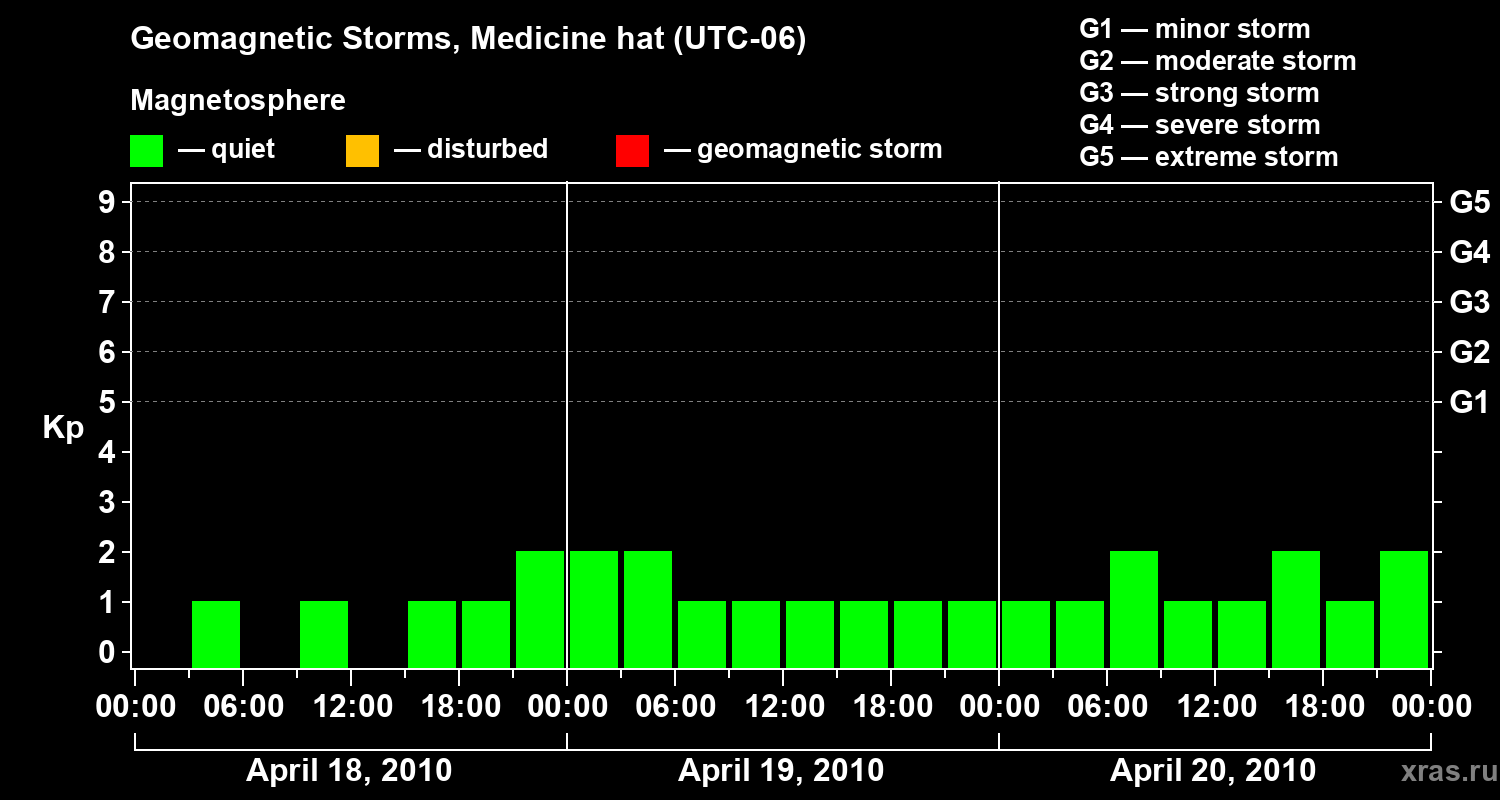 Geomagnetic storms in Medicine hat — Apr 20, 2010