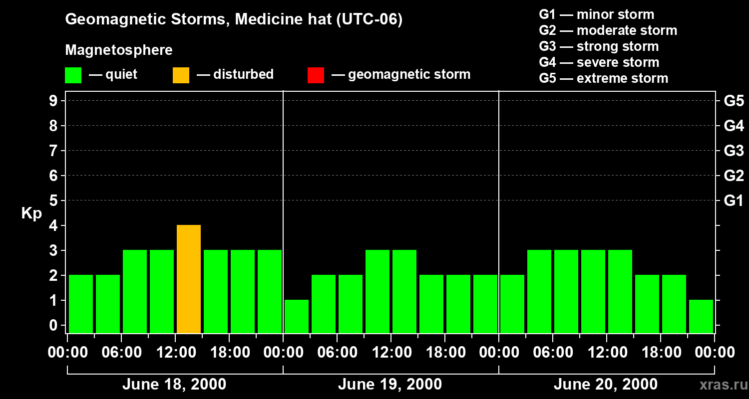 Geomagnetic storms in Medicine hat on Jun 20, 2000