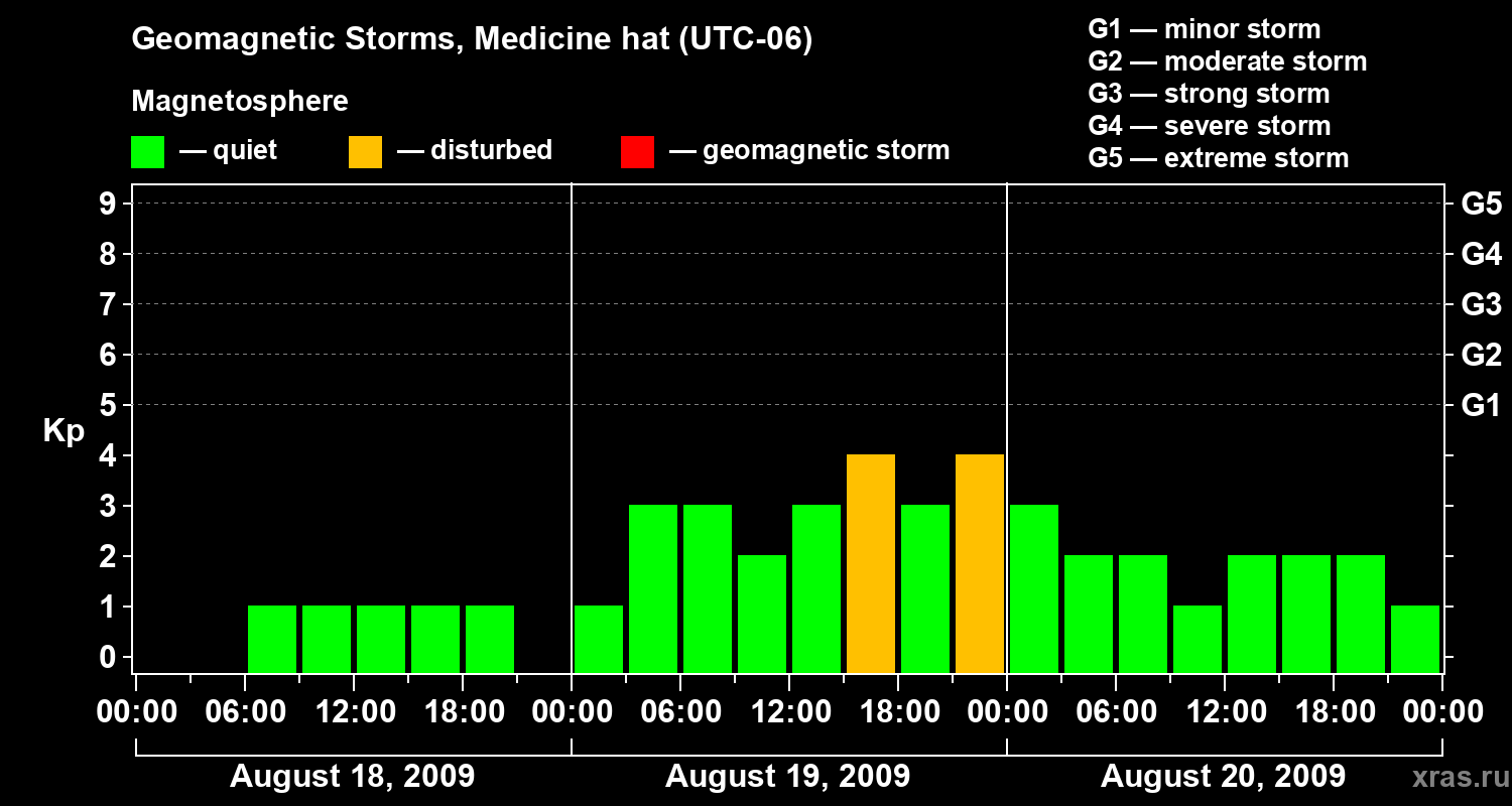 Geomagnetic storms in Medicine hat on Aug 20, 2009