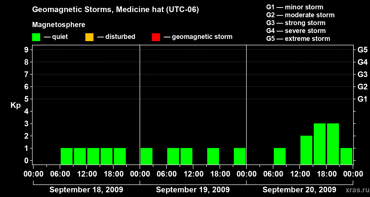 Geomagnetic storms in Medicine hat on Sep 20, 2009