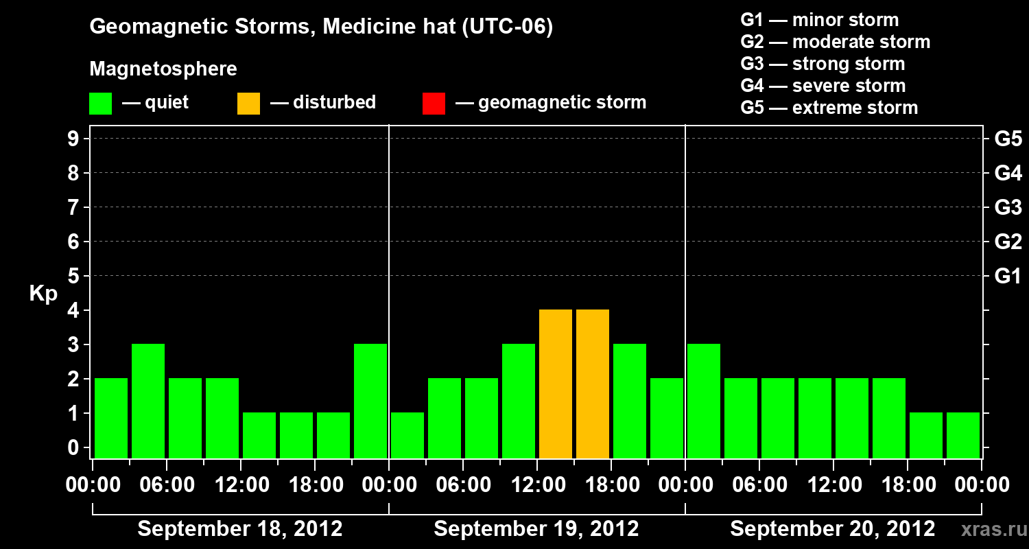Geomagnetic storms in Medicine hat on Sep 20, 2012