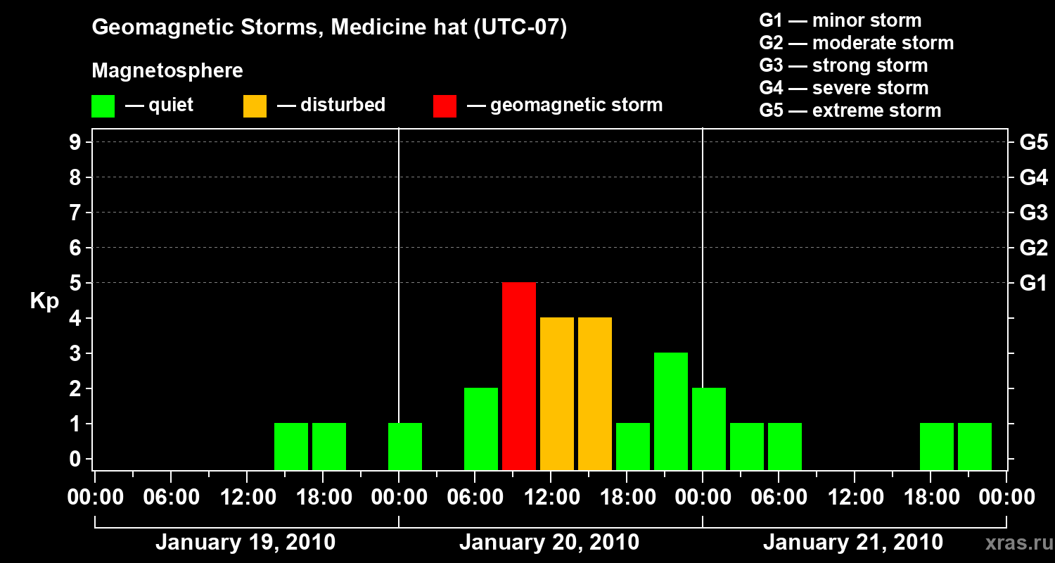 Geomagnetic storms in Medicine hat — Jan 21, 2010