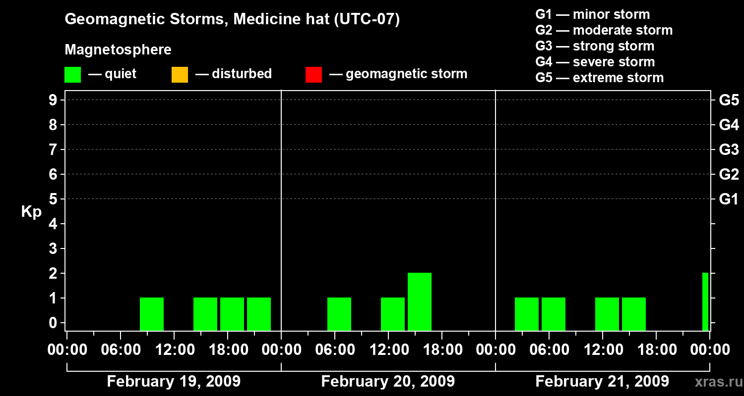 Geomagnetic storms in Medicine hat on Feb 21, 2009
