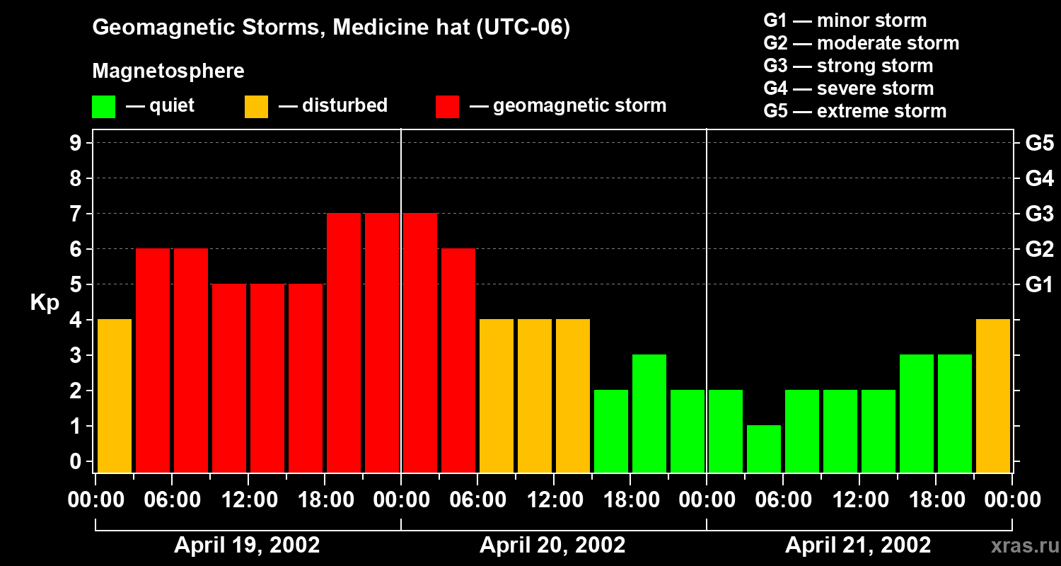 Geomagnetic storms in Medicine hat on Apr 21, 2002