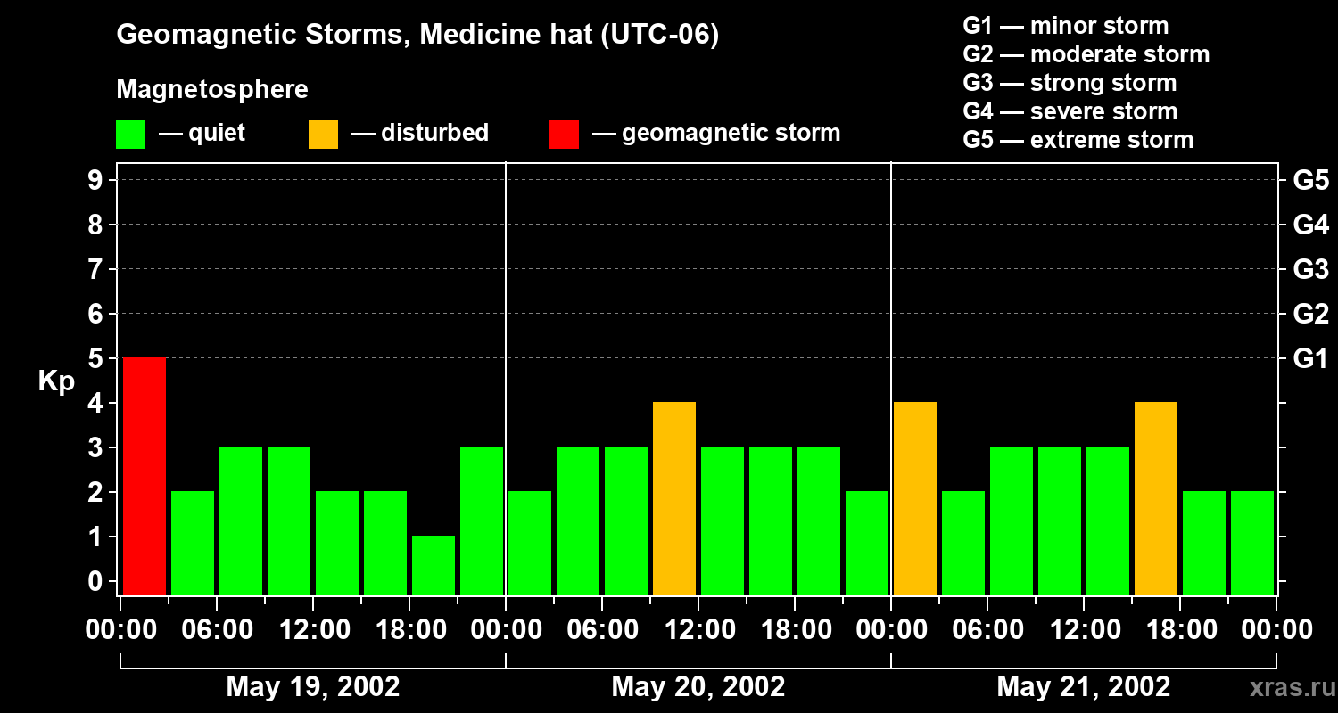 Geomagnetic storms in Medicine hat on May 21, 2002