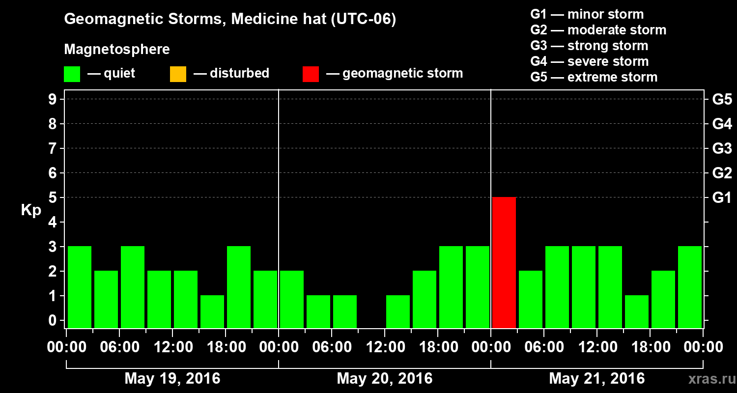 Geomagnetic storms in Medicine hat — May 21, 2016