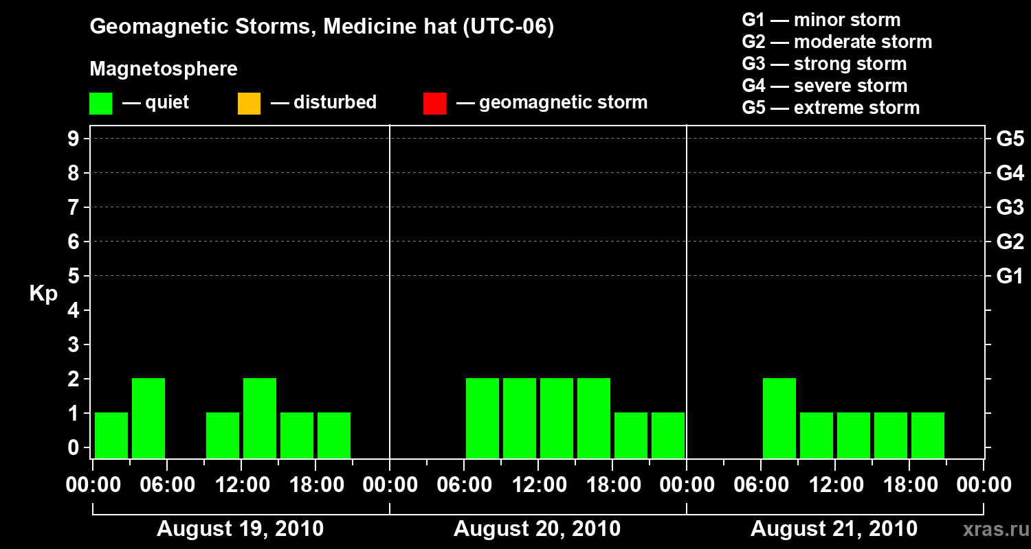 Geomagnetic storms in Medicine hat — Aug 21, 2010
