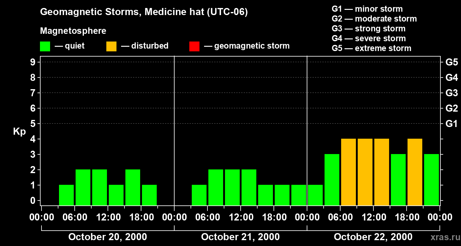 Geomagnetic storms in Medicine hat on Oct 22, 2000