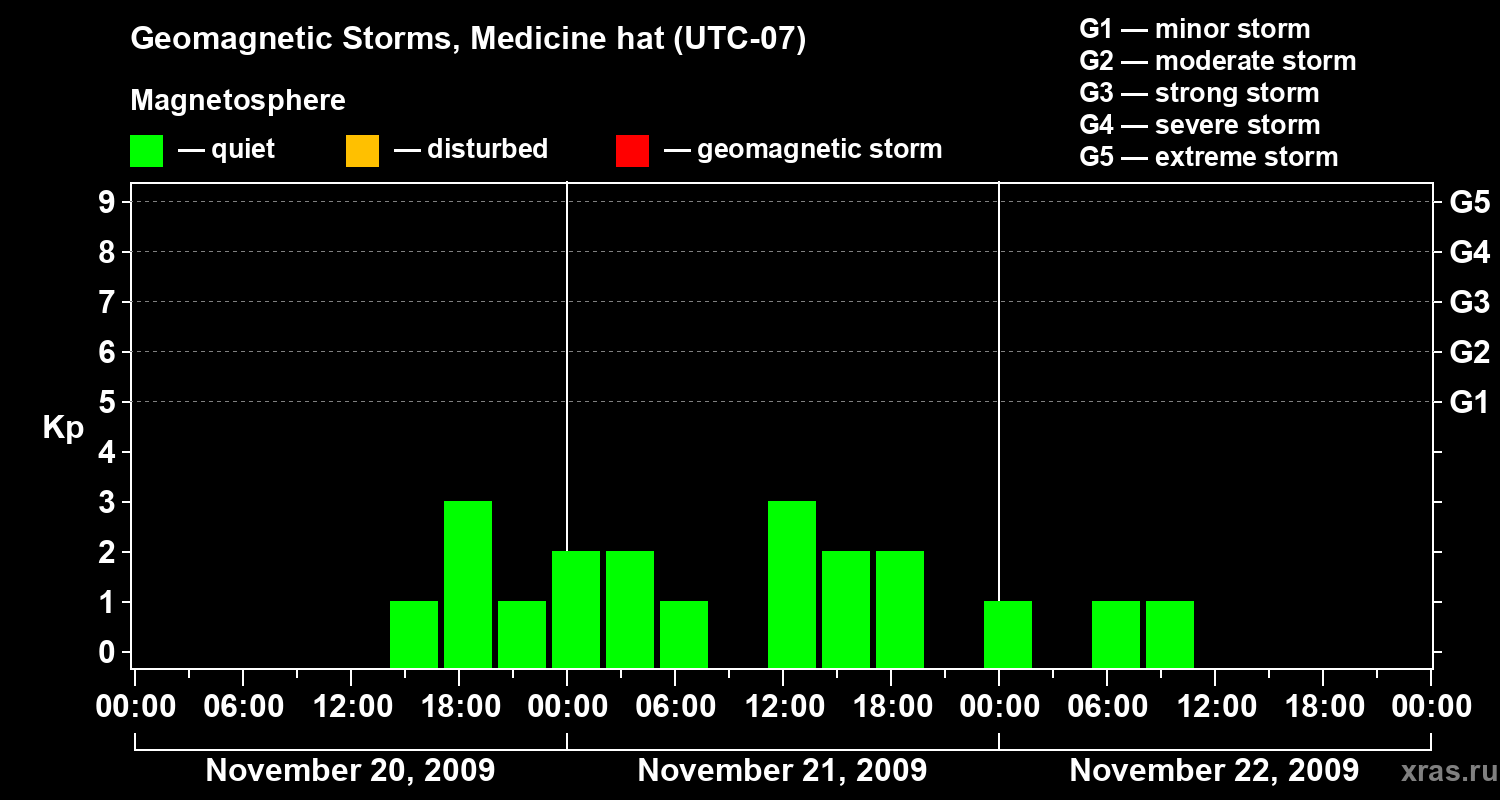 Geomagnetic storms in Medicine hat — Nov 22, 2009