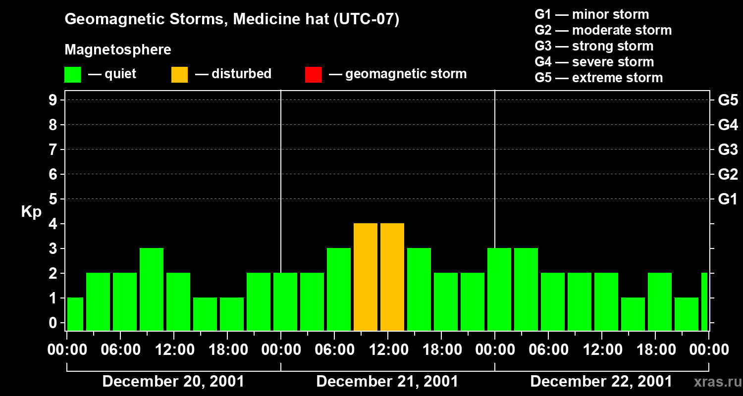 Geomagnetic storms in Medicine hat on Dec 22, 2001