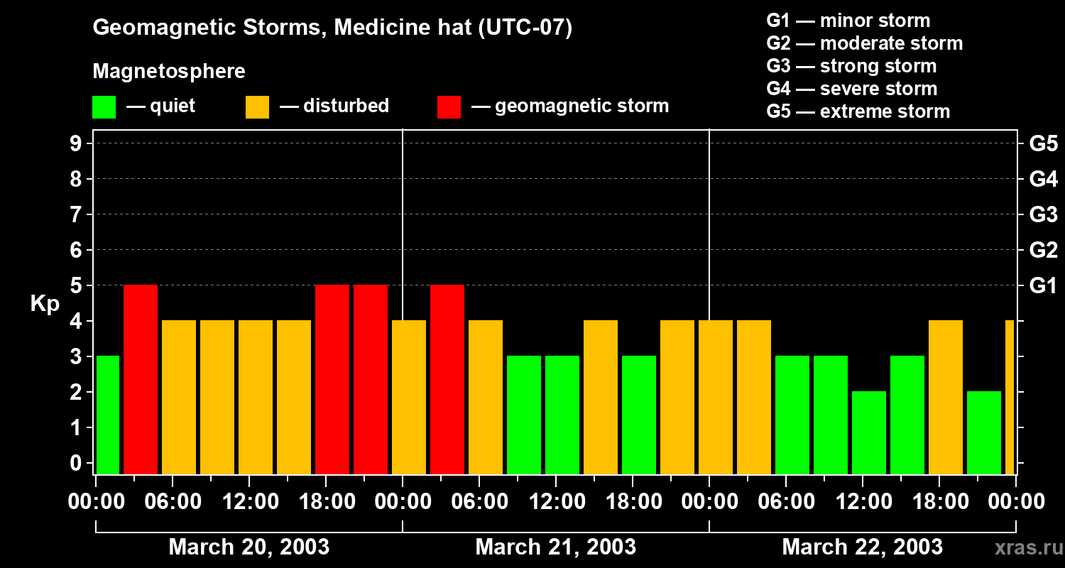 Geomagnetic storms in Medicine hat on Mar 22, 2003