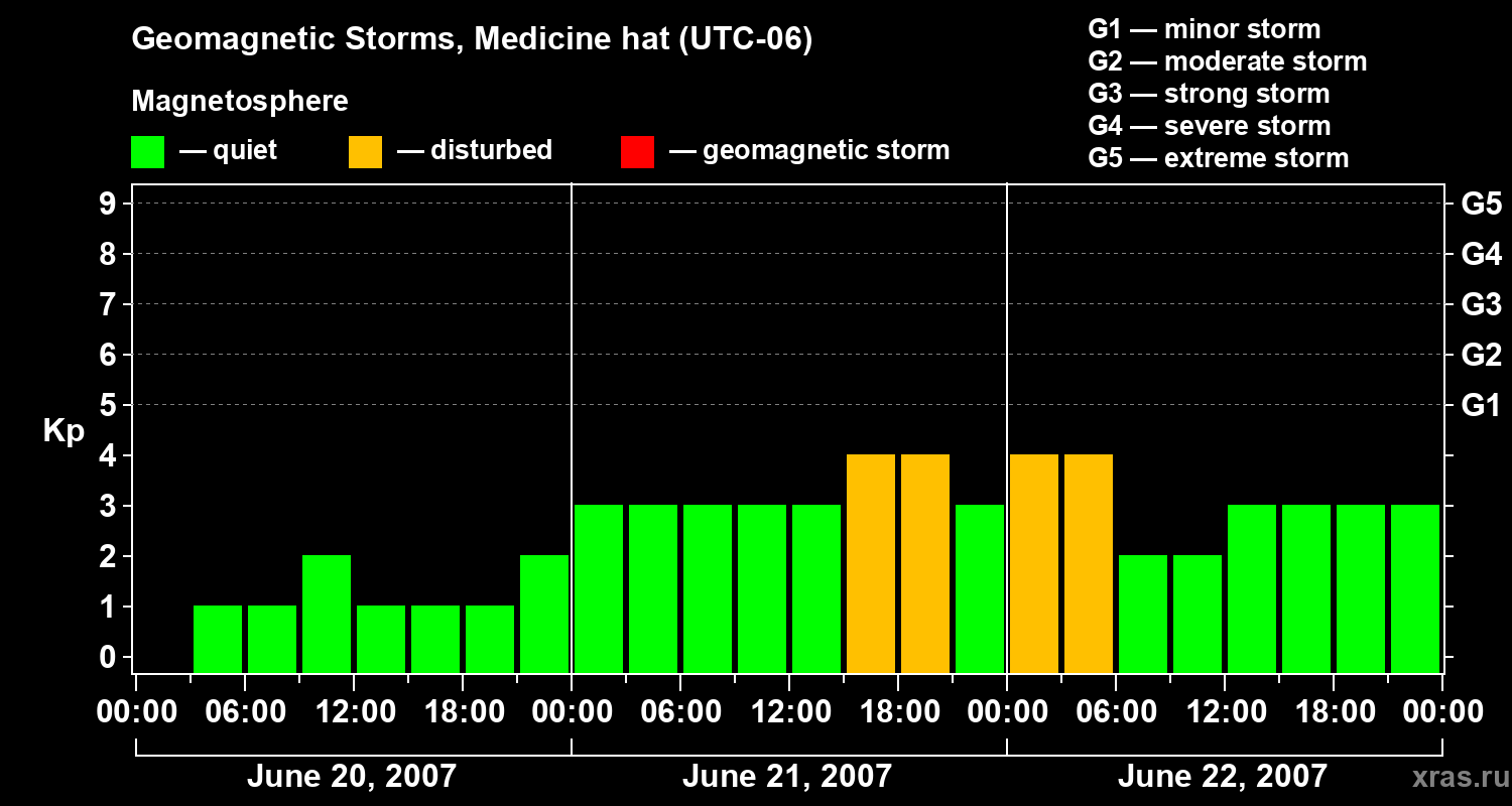 Geomagnetic storms in Medicine hat on Jun 22, 2007