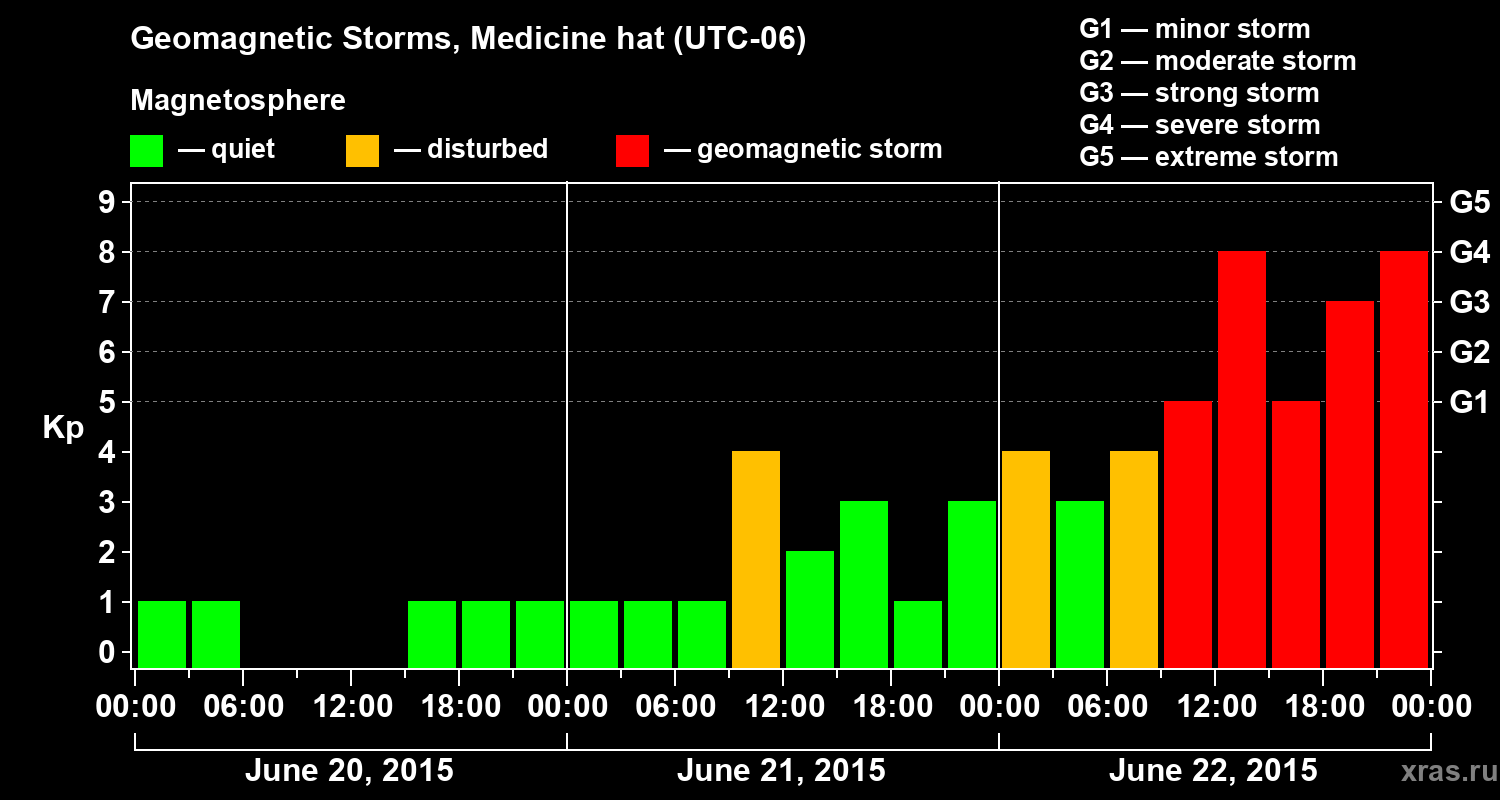 Geomagnetic storms in Medicine hat — Jun 22, 2015