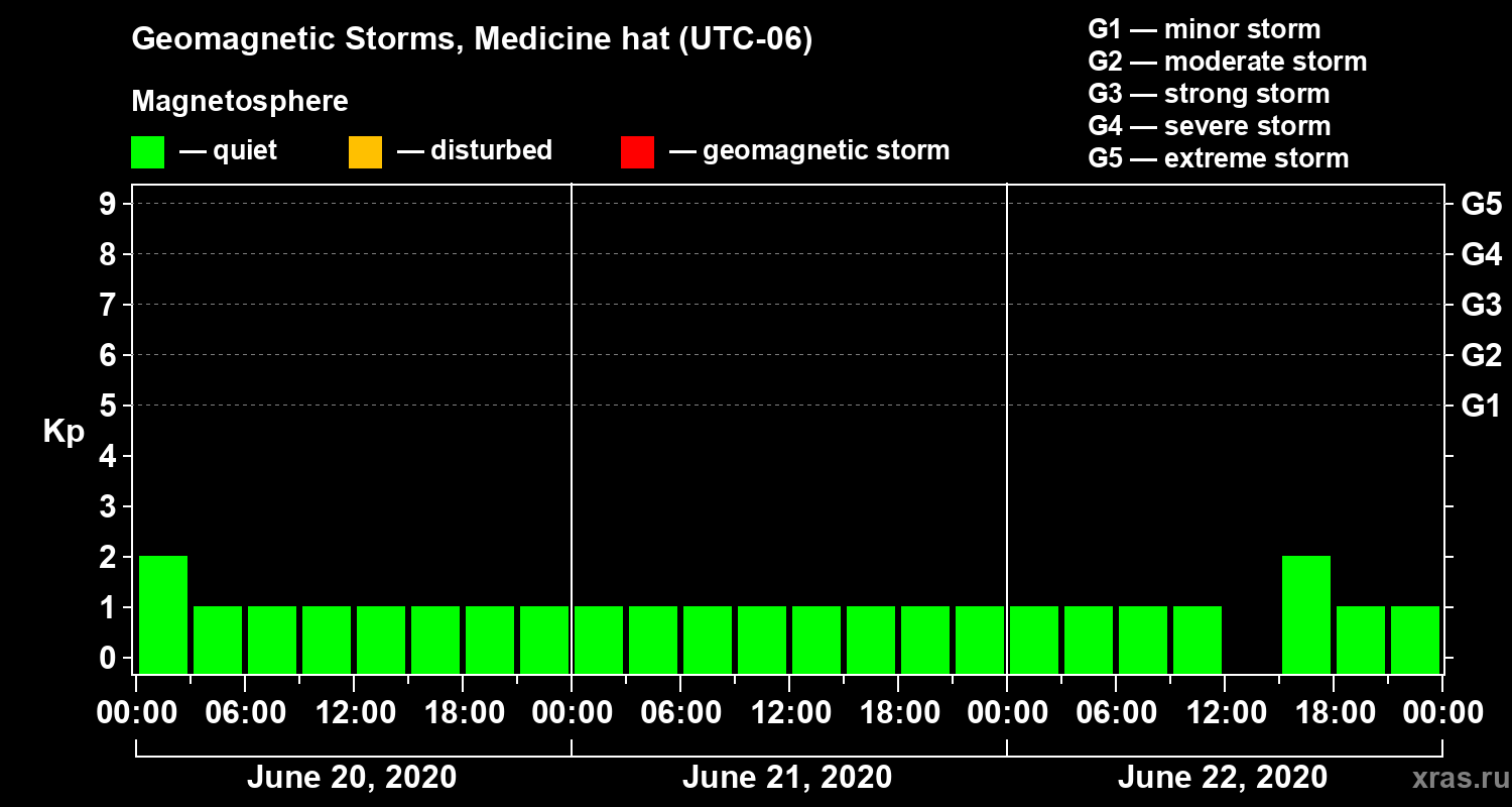 Geomagnetic storms in Medicine hat — Jun 22, 2020