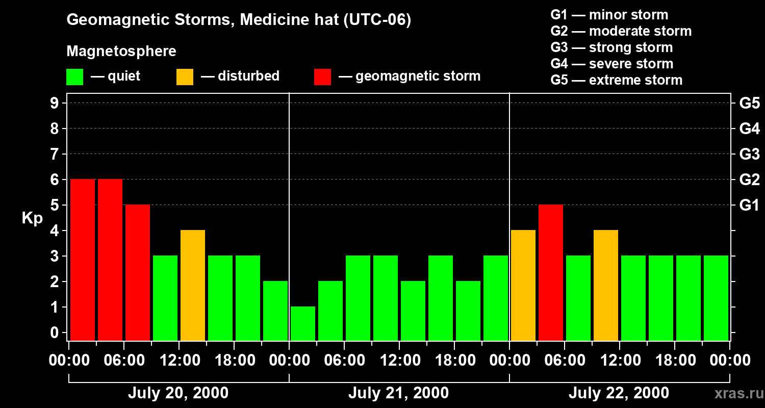 Geomagnetic storms in Medicine hat on Jul 22, 2000