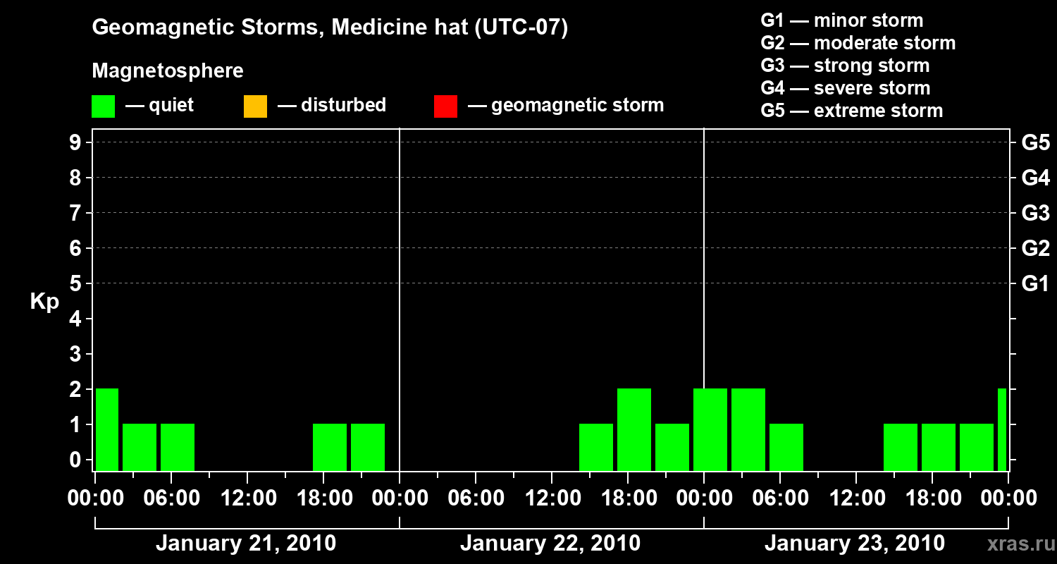 Geomagnetic storms in Medicine hat — Jan 23, 2010