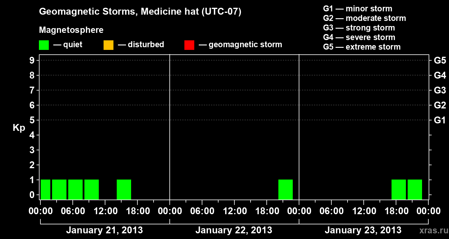 Geomagnetic storms in Medicine hat — Jan 23, 2013