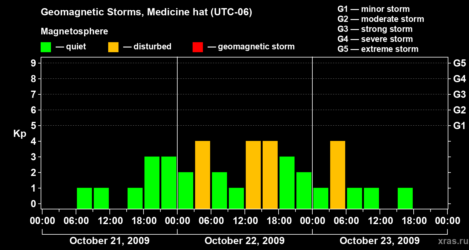 Geomagnetic storms in Medicine hat on Oct 23, 2009