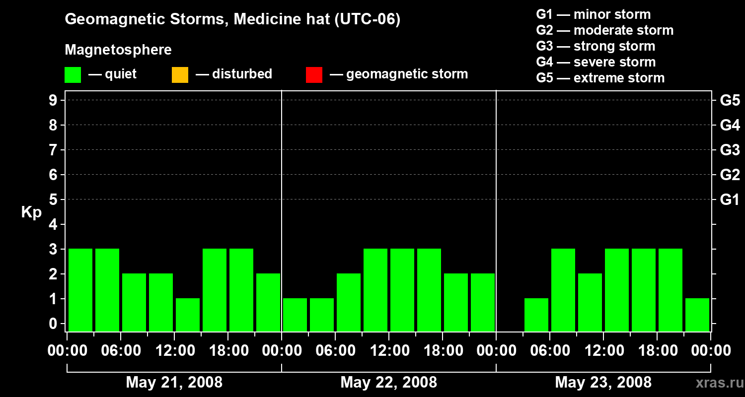 Geomagnetic storms in Medicine hat on May 23, 2008