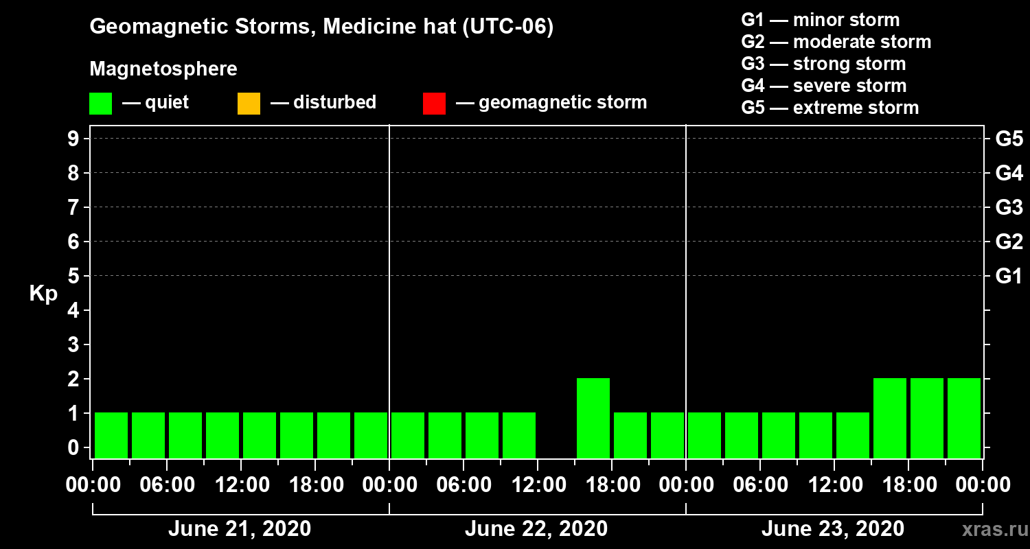 Geomagnetic storms in Medicine hat — Jun 23, 2020