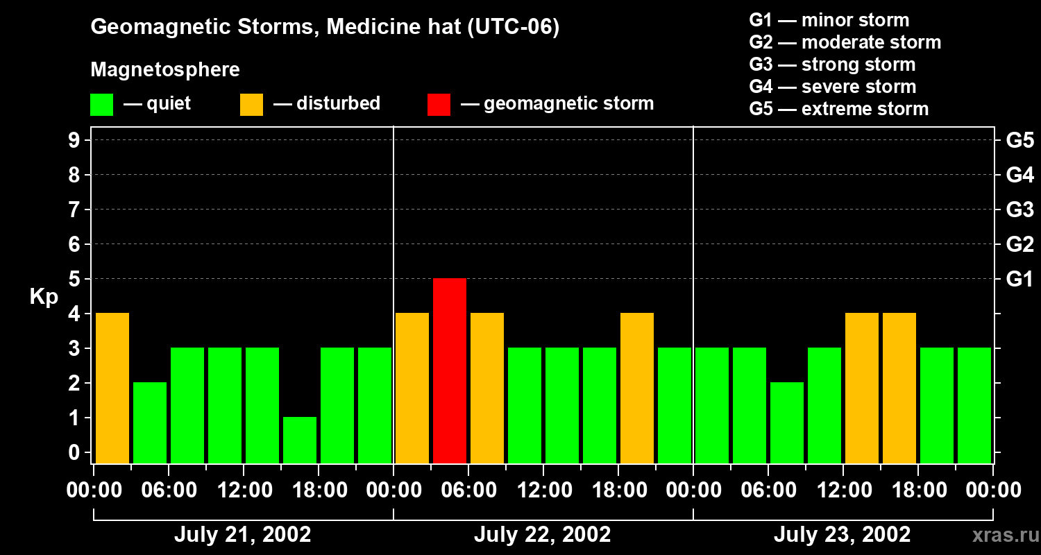 Geomagnetic storms in Medicine hat on Jul 23, 2002