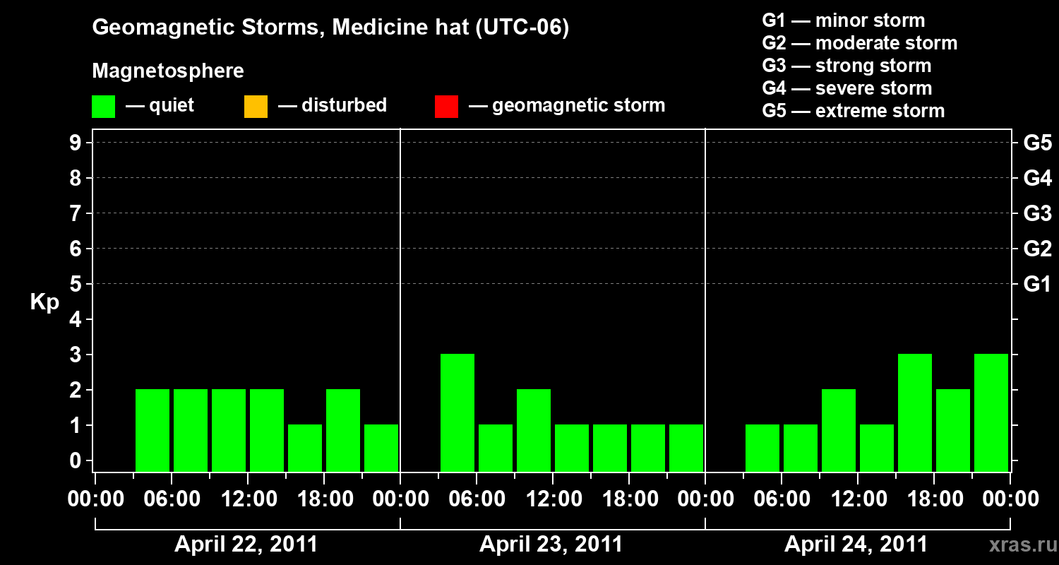 Geomagnetic storms in Medicine hat — Apr 24, 2011