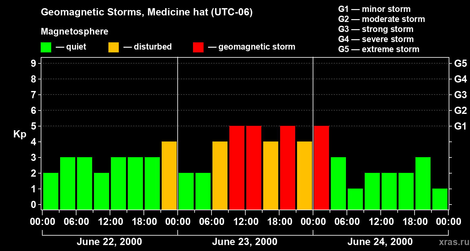 Geomagnetic storms in Medicine hat on Jun 24, 2000