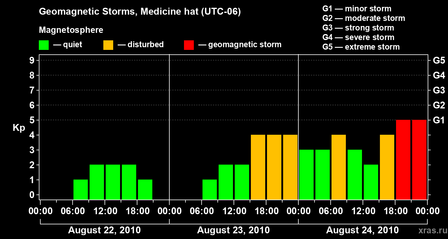 Geomagnetic storms in Medicine hat — Aug 24, 2010
