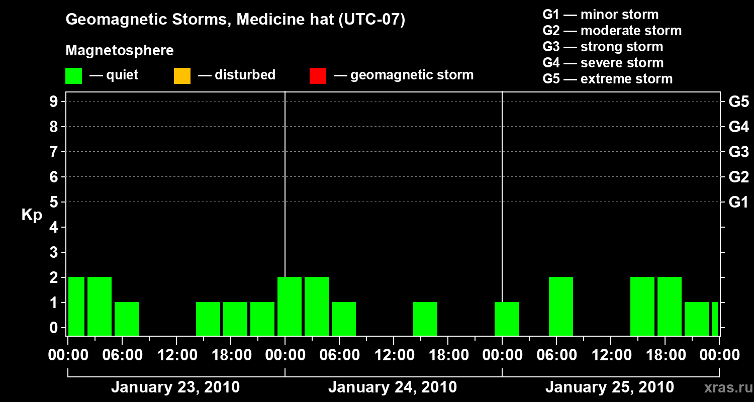 Geomagnetic storms in Medicine hat — Jan 25, 2010