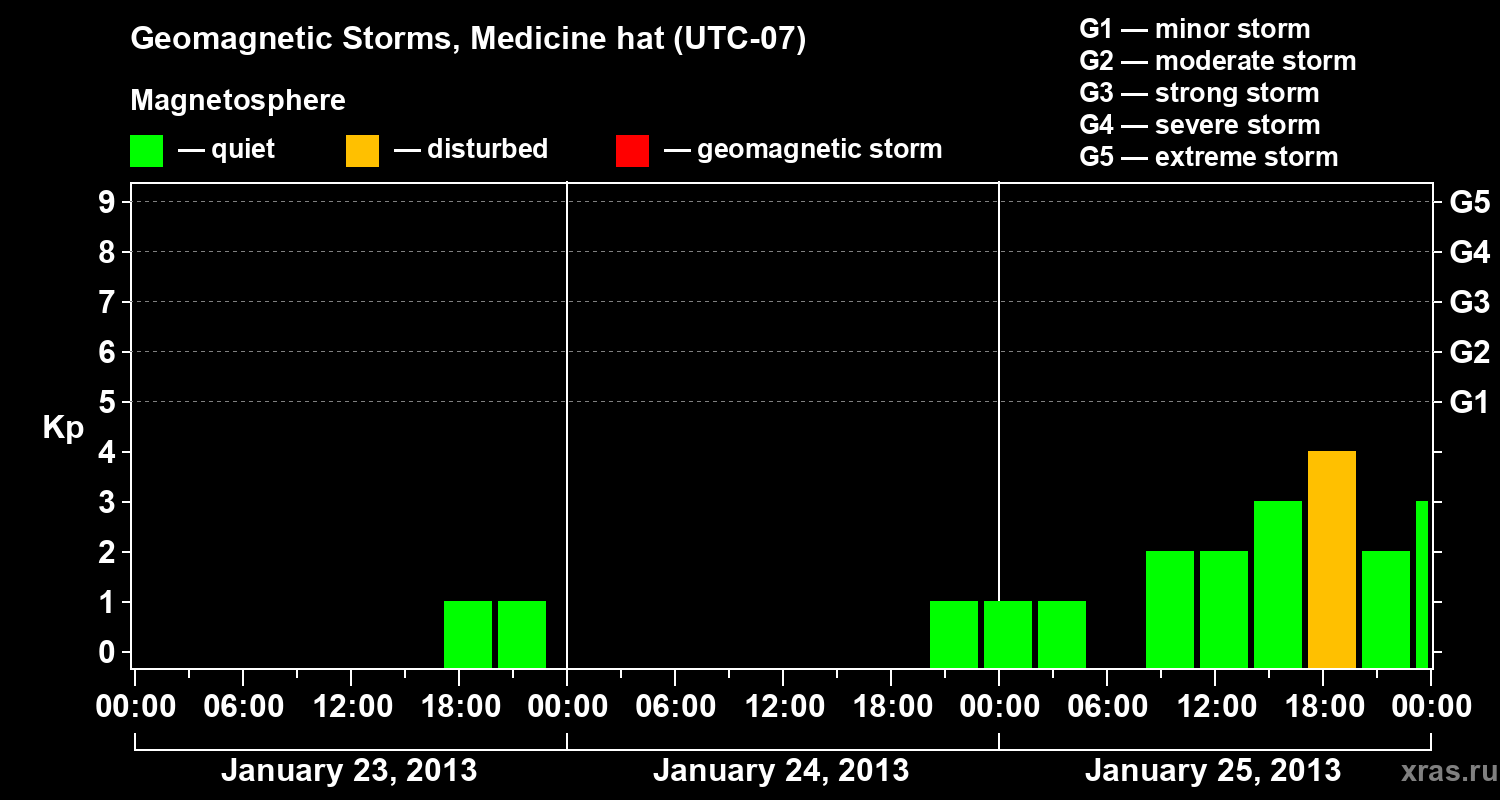 Geomagnetic storms in Medicine hat — Jan 25, 2013