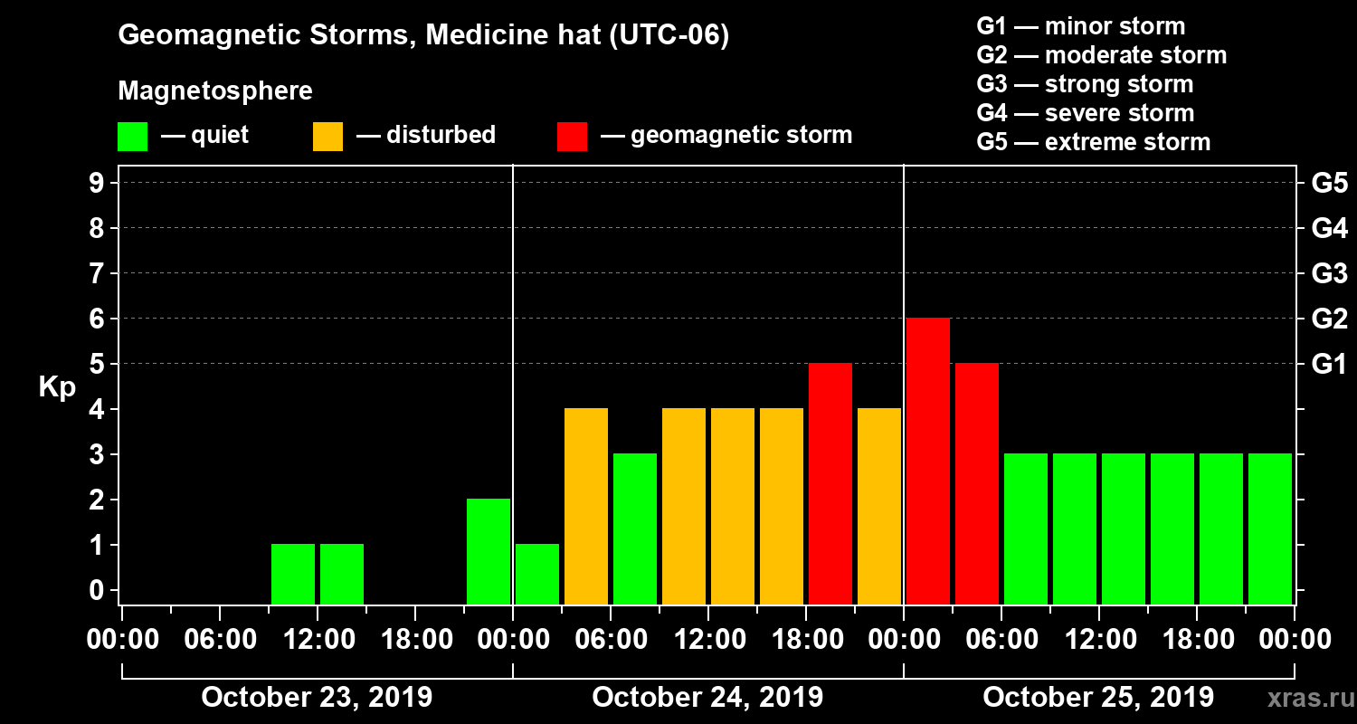 Geomagnetic storms in Medicine hat — Oct 25, 2019