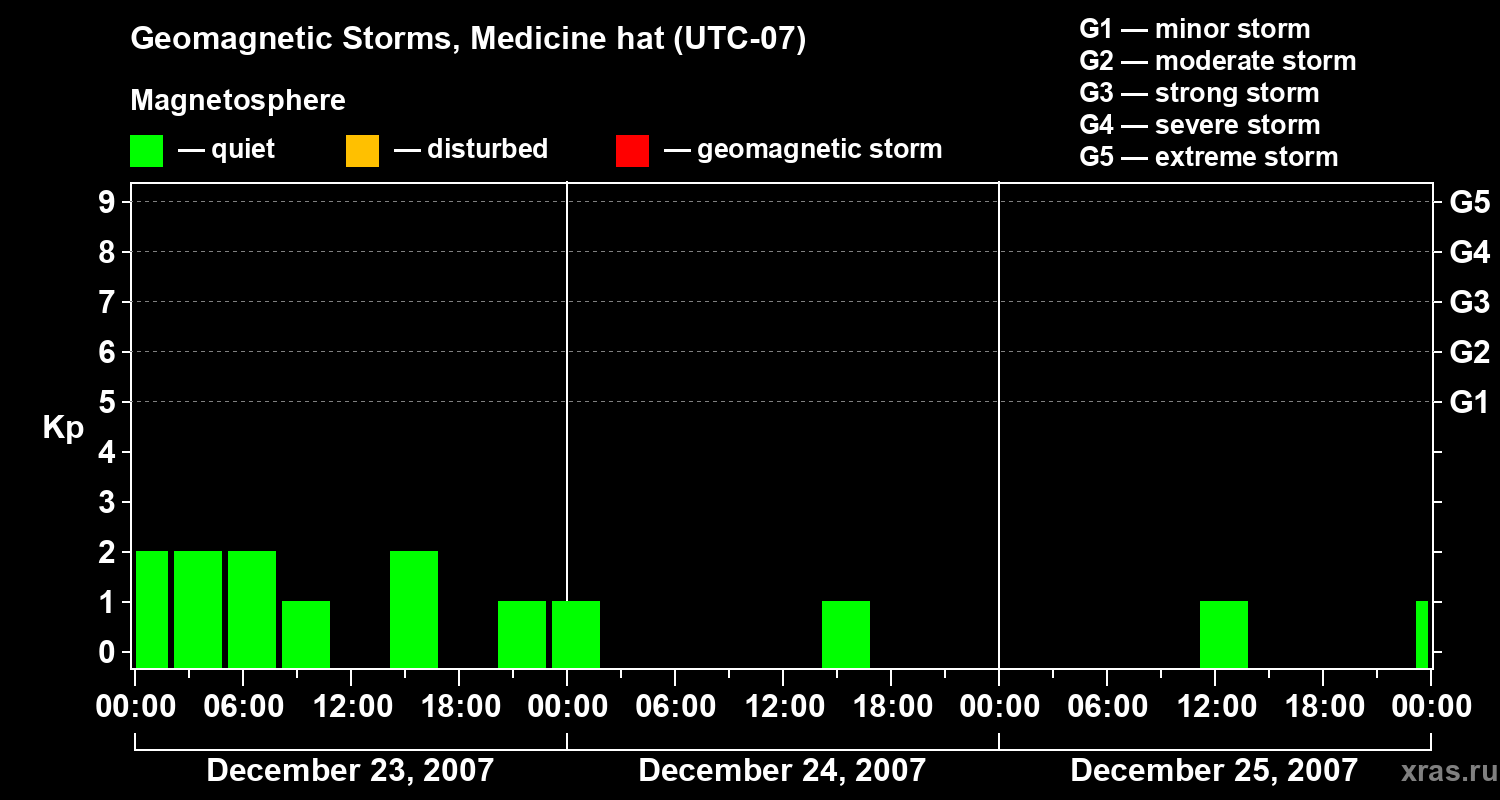 Geomagnetic storms in Medicine hat on Dec 25, 2007