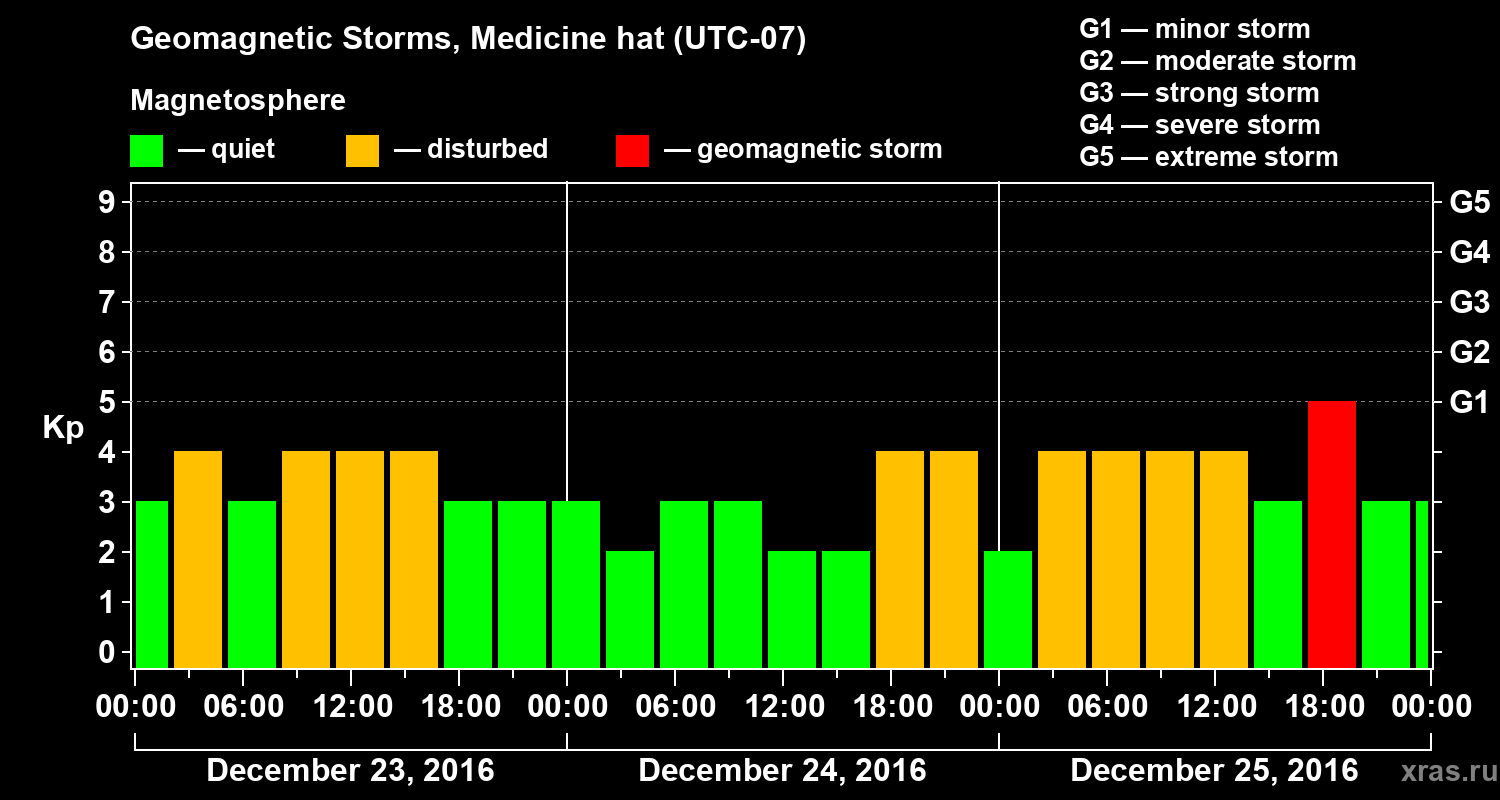 Geomagnetic storms in Medicine hat on Dec 25, 2016