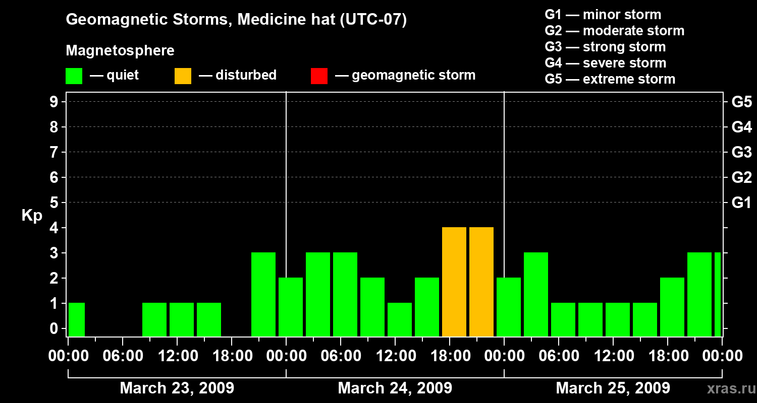 Geomagnetic storms in Medicine hat — Mar 25, 2009